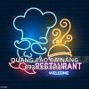 Dưới ánh đèn mềm mại của buổi tối, bảng hiệu trở nên lung linh và lôi cuốn hơn bao giờ hết. Ánh sáng chiếu lên từ dưới, làm nổi bật những chi tiết tinh xảo và tạo ra những bóng đổ đầy mê hoặc. Đối với những ai đang đi qua, bảng hiệu này là một điểm nhấn rực rỡ giữa cuộc sống vội vã của thành phố.